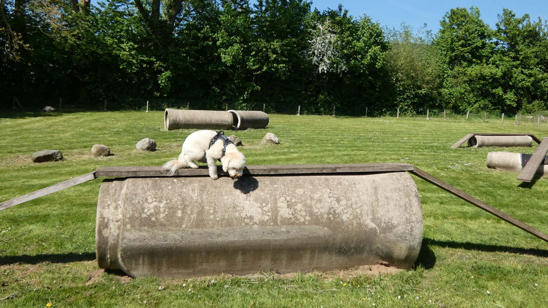 Dogs are very welcome at the Doktorsee. Bring your furry friends along and they will feel right at home. To ensure a relaxed atmosphere, your four-legged buddies must be kept on a leash on the premises but they can let loose and jump around in our dog play area. Extensive paths outside the recreation park provide opportunities for long walks. Although dogs are not allowed in the bathing lake, there are four dog showers where they can cool off. And if you need a place for your dog to swim, we will be happy to recommend one.