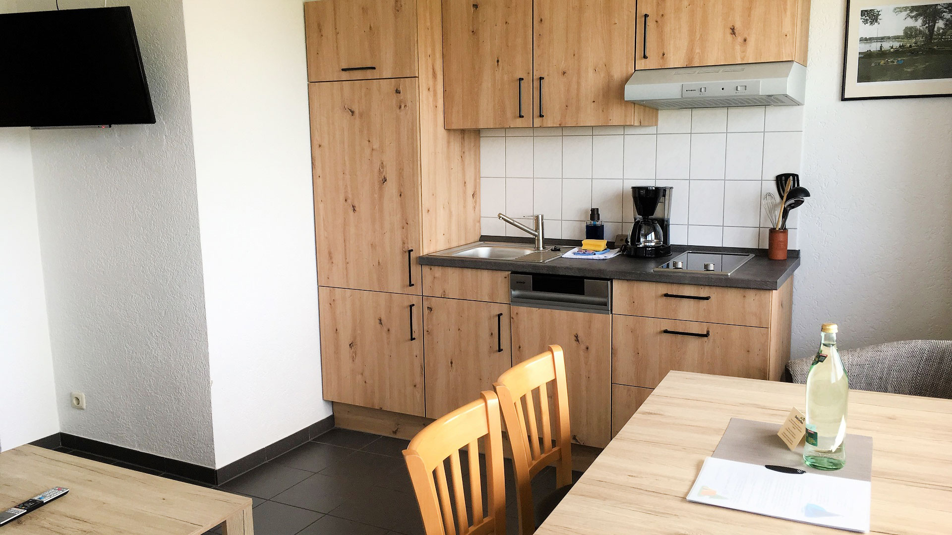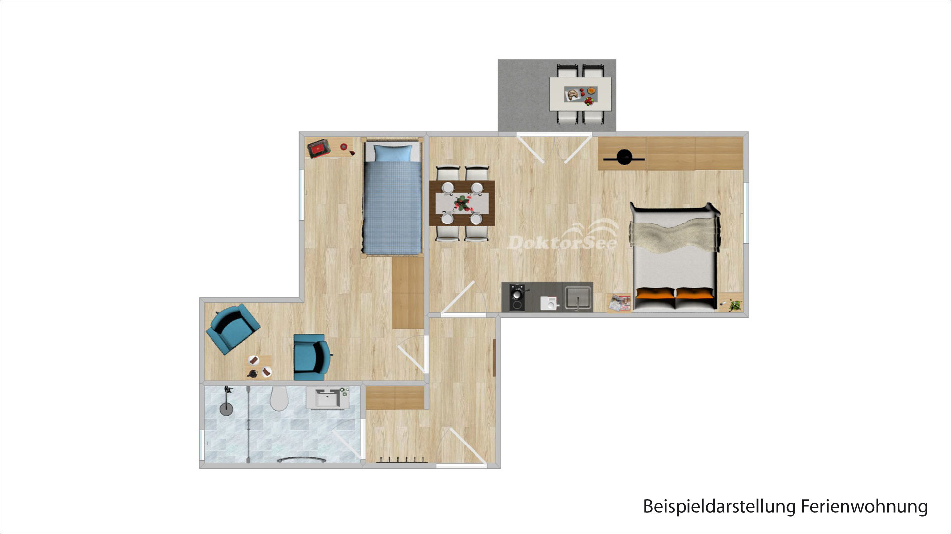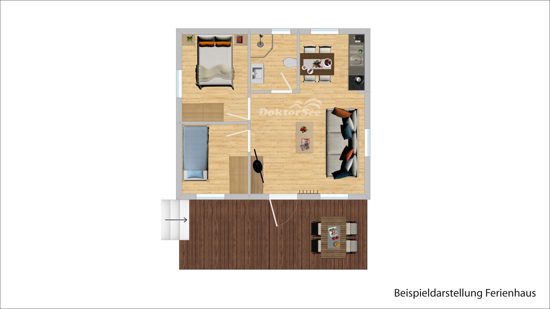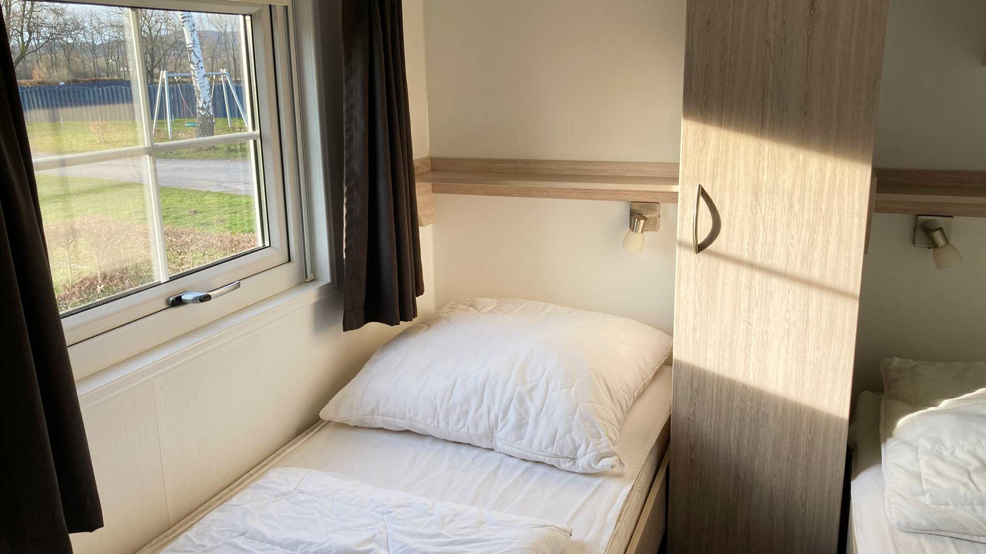 Close to the lake and just a stone’s throw away from the sauna oasis, our premium holiday chalets are available for your holiday. A 26 m2 double room with a small kitchen and a modern bathroom awaits you. We will be happy to provide a travel cot and high chair upon request. Step outside onto a wooden floor terrace, snuggle up in a comfortable box spring double bed (German size), and make use of convenient amenities, such as a dishwasher and air conditioning. This way you can enjoy your time!