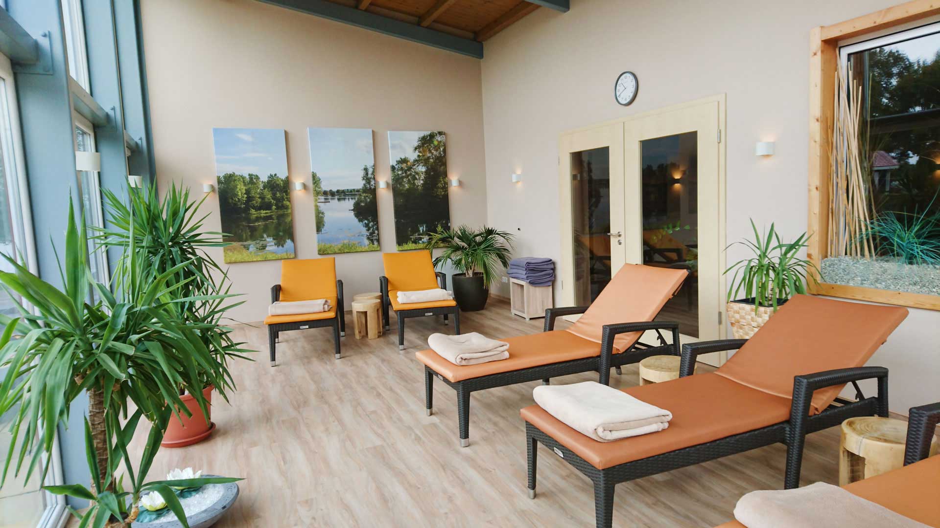 The light-flooded winter garden provides room for relaxation and in the fireside lounge next door you can curl up and enjoy the cosiness. The sun terrace and a nice landscaped garden with a fountain and a small stream add to the relaxing and lasting effects of your sauna time. An outdoor hot tub offers further opportunities to regenerate and feel good. Between and after sauna sessions, you can savour food and drinks in the comfortable bistro area.